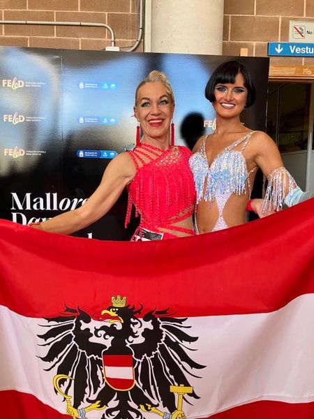 Viele Grüße aus Calvia/Mallorca von der Weltmeisterschaft der Solo Latein-Damen der allgemeinen Klasse! Wir sind stolz darauf, dass wir Österreich repräsentieren durften! In einem starken Feld erreichte Petra Lechner das Viertelfinale und belegte Platz 24. Für Martina Gansterer war es eine wertvolle Erfahrung. Am Sonntag gab es WDSF solo Senioren-I-Bewerbe und da freute sich Martina über einen 3.Platz in Standard (von 5) und einen Finalplatz (5./8) in Latein. Wir haben das Mallorca Dance Festival sehr genossen! Petra und Martina