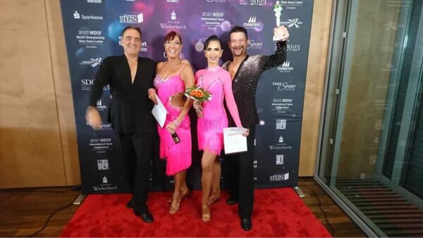 Österreichischer Sieg bei den Sen III La : Herbert und Beatrix Schöpf, die strahlenden Sieger auf dem Podest. Den österreichischen Erfolg komplettieren Hendryk Schwarz und Martina Folladore mit Platz 5 im Finale. 30 Paare nahmen an diesem Turnier teil.